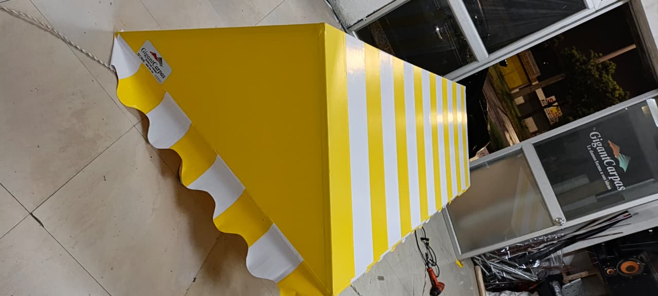 Viseras y toldos fijos para locales comerciales, ventanas y entradas. Protección elegante contra sol y lluvia a medida.